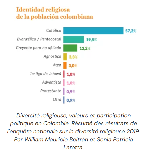 La religion, enfin, occupe une place prépondérante dans la société colombienne. Majoritairement catholique, la population affiche une foi vivante, qui influence aussi bien les traditions familiales que le comportement social. Cela se manifeste au quotidien : on prie dans les bus, les maisons ou taxi sont décorées de représentations religieuses et les fêtes chrétiennes rythment le calendrier. Les touristes eux-mêmes y sont confrontés, par exemple lors de processions spectaculaires pendant la Semaine sainte ou lorsqu’un chauffeur de taxi vous répondra “gracias a Dios” (« grâce à Dieu ») pour exprimer sa gratitude ou marquer la fin d’une conversation. Le pays connaît toutefois une diversification croissante des croyances, avec une montée du protestantisme évangélique et une reconnaissance accrue des pratiques spirituelles indigènes. Ce contexte religieux crée une société attachée aux valeurs familiales, à la solidarité communautaire et à une certaine forme de spiritualité populaire.